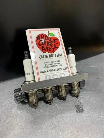While most Indy natives would mention a small connection to motorsports, there are those, such as Katie Buttera, who is much more involved. Katie is the owner of Apple Girl Art and specializes in taking racing components that are no longer needed and turning them into compelling pieces of art, jewelry, and functional pieces.