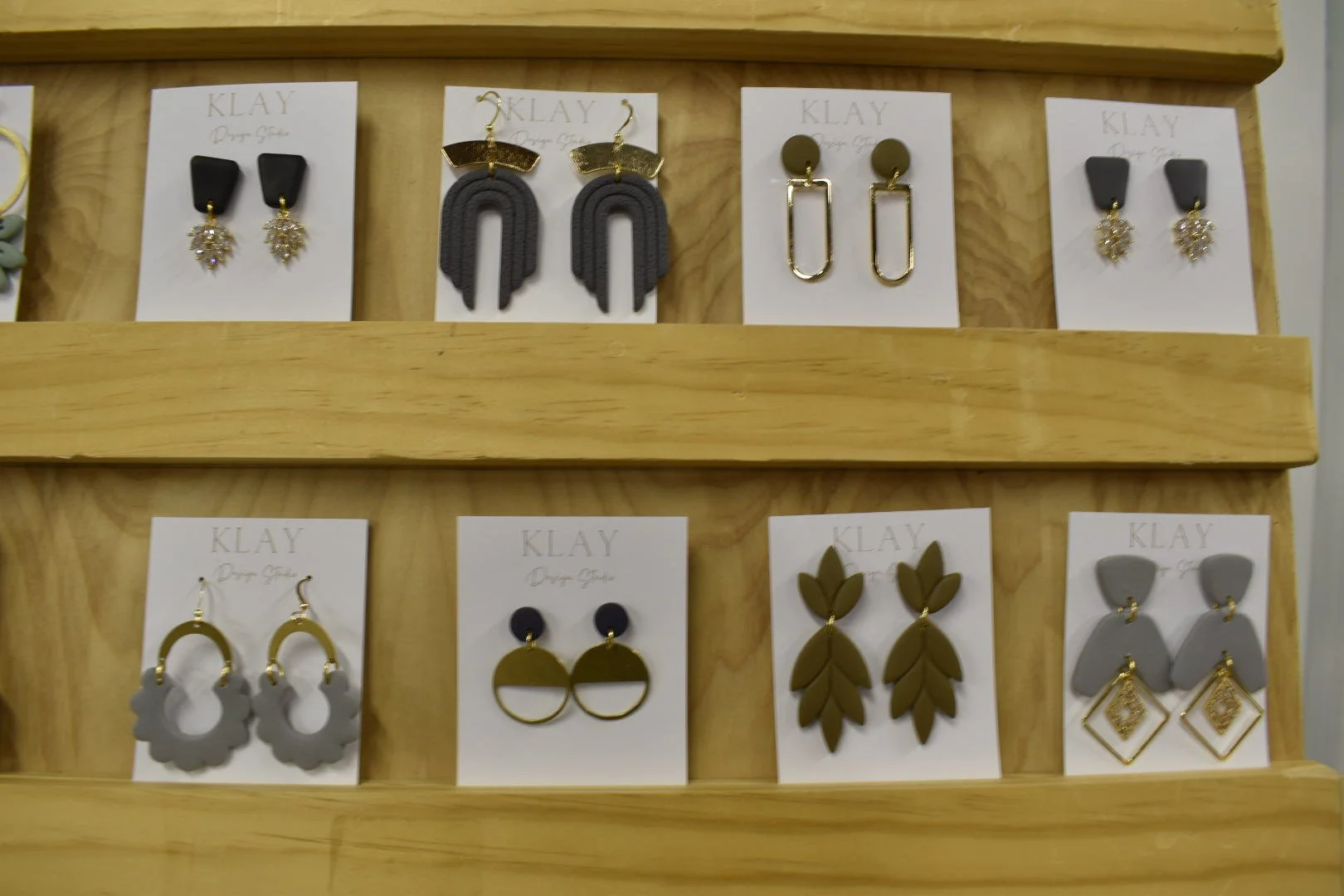 The earrings that come out of Klay Design Studio are all hand made by Karyn and are all things that she would wear herself. Karyn follows her artistic intuition while making her designs, as opposed to significant planning. However, there is a dedication and focus on quality through the entire process, choosing the best quality polymer clay and processes to eliminate bubbles and imperfections. Each new style (described as a little modern and a little boho) is tested by close friends and family who share similar style tastes and have proven that they are willing to share their genuine opinion.