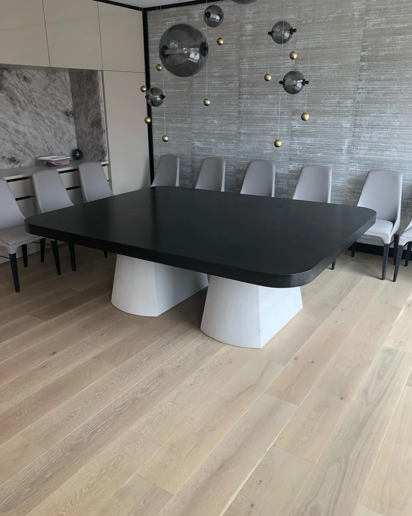 This is the definition of a statement piece! Absolutely stunning dining room table with room for 10 chairs.